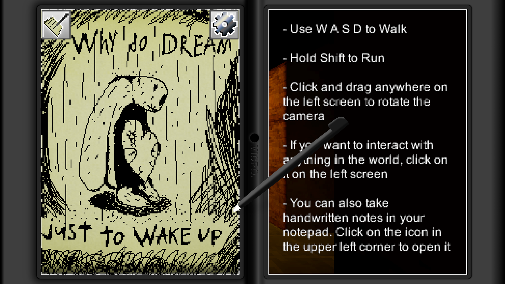 I really like the dual screen design in this horror game! My favorite thing about this game is the fact that you can draw whatever you want on the notepad lol! Keep up the excellent work!
